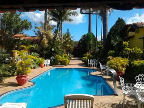 Localizado na Região dos Lagos, Sobradinho, o imóvel é composto por várias casas, sendo elas: uma com 3 suítes, 4 salas, cozinha ampla, área de serviço e varanda externa, outra com 3 suítes, 2 salas, escritório, cozinha ampla, área de serviço e varanda externa, uma terceira com 2 suítes, sala, escritório, área de serviço e varanda, e uma última com 1 suíte e sala com cozinha americana. As casas possuem piso em porcelanato, ar-condicionado e varanda externa. A área comum inclui garagem descoberta, piscina, churrasqueira, espaço de lazer com bancadas em granito e jardim.